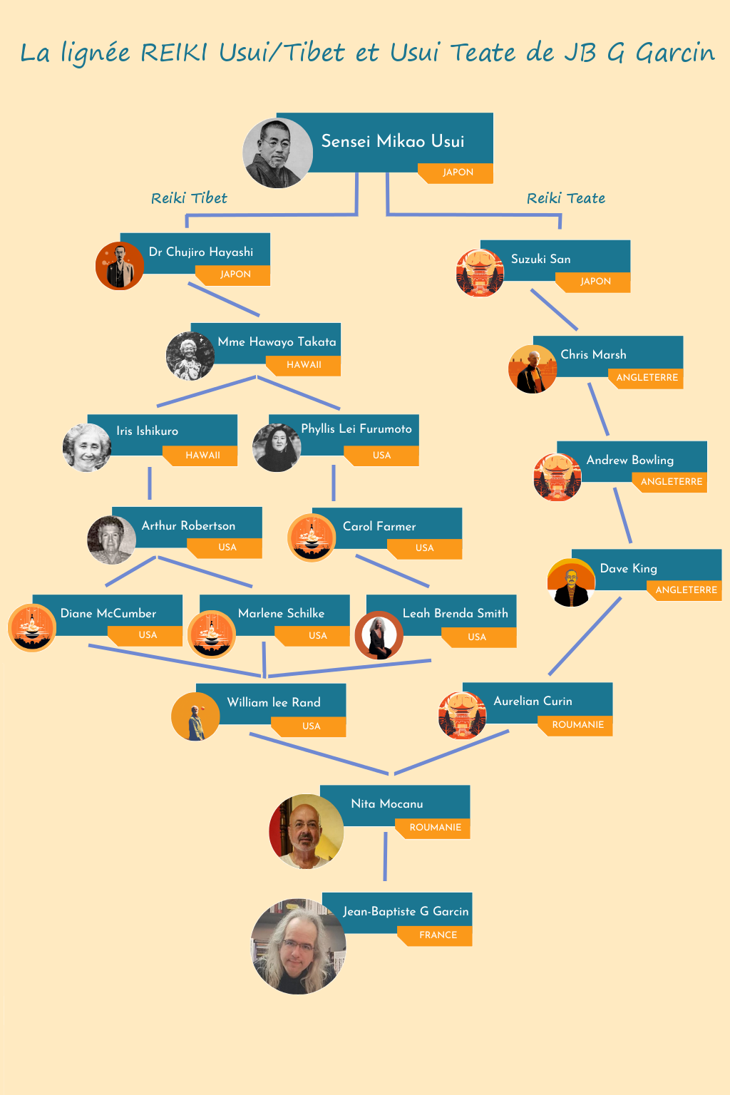 - Continuité et préservation : La lignée Reiki assure la continuité de la tradition et la préservation de l'essence du Reiki. Les enseignements et les techniques sont transmis de génération en génération, préservant ainsi les connaissances et les pratiques originales du Reiki. L’enseignement du Reiki que j’ai reçu intègre un noyau de connaissances communes et proches des pratiques initiales. L’intégrité de la continuité du système est un moyen de s'assurer que les principes fondamentaux du Reiki sont respectés.